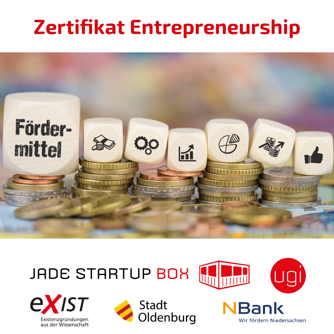 Christoph Wölki (NBank) informiert über Landesförderungen, während Jannic Jacobs (Stadt Oldenburg) regionale Förderungen der Stadt Oldenburg vorstellt. Annika Schöbel (Jade Startup Box) stellt das EXIST-Gründungsstipendium vor und Berit Müller (Jade Startup Box) berichtet über Förderungen im Zusammenhang mit Nachhaltigkeit.