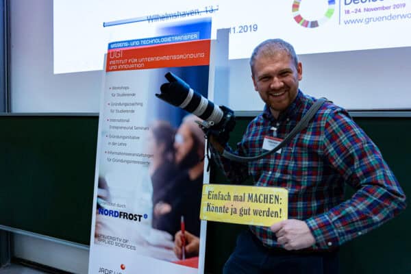 Mit einem kurzen Impuls öffnet der Vizepräsident Prof. Dr. Holger Saß der Jade Hochschule den Raum für neue Ideen, Kooperationen und mutige Gründungen.